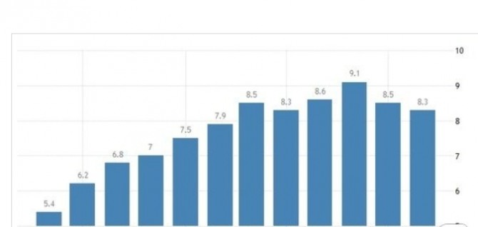 즉 10월에 발표하는 CPI는 9월 소비자 물가 지수이다. 지난 8월보다 둔화되지만 8대를 벗어날 수 없을 것이라고 본 셈이다. 미국 소비자물가지수 CPI.